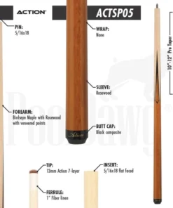 The subtle beauty in the sneaky pete Action ACTSP05 cue allows you to focus on the task at hand in a simple, dignified manner. This affordably priced, yet highly effective, cue is made of high quality hardrock and birdseye maple and rosewood.