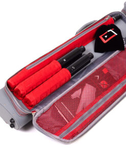 Integrated hidden mobile phone pocket –ย Leather joint protector holder and organizer –ย Cushioned removable backpack straps –ย Integrated padded jump cue sleeve –ย Dual extension pockets –ย Clear-view mesh organizer pockets –ย Steel swivel and zipper hardware –ย Double stitched & welded seams –ย Red contrast stitching and piping