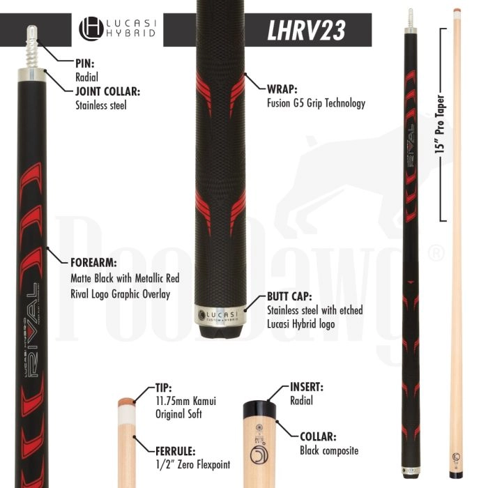 This cue from Lucasi Hybrid is one that is undeniably good looking and has even better playability, featuring a 11.75mm Zero Flex Slim Shaft, Kamui Soft Tip, the value in this cue is incredible. Not only that, but the engineering thats gone in to creating these Rival cues is something to marvel at, with a 10 piece shaft construction for the ultimate consistency, as well as shock-absorbing memory foam integrated right into the wrap itself to reduce vibrations from your shot, the result is a cue that’ll make you the envy of every player unfortunate enough to cross your path.