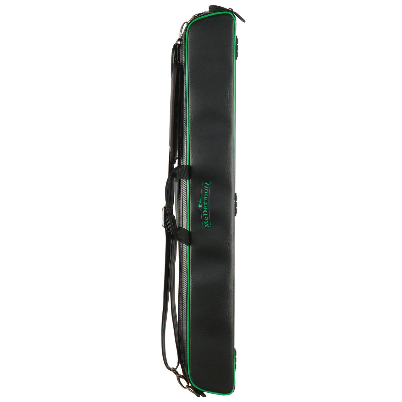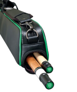 McDermott’s new 2×3 Hard/Soft Hybrid Case is unlike anything youโve seen before. It features a unique 1×1 hard shell end compartment for cue and shaft storage, as well as a 1×2 removable soft felt sleeve that fits inside the zippered top section. This case is designed with an extra long 32โ interior and a special storage area for your jump handle